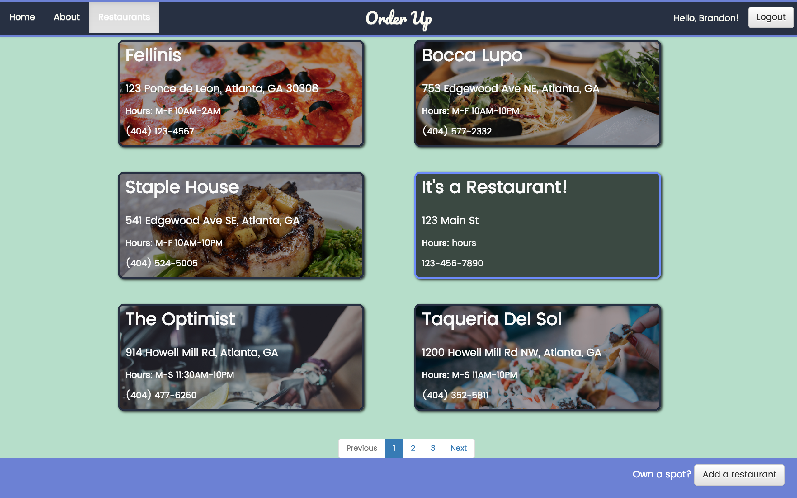 Order-Up is a group project that was constructed using MEAN stack. It was designed to allow users to log on and select menu items from local restaurants restaurant owners to go onto the site and create a profile for their establishment and menus.